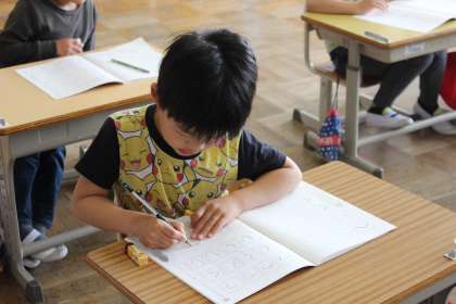 1年生の国語の授業の様子です。 ひらがなの練習をしました。鉛筆を正しく持って、丁寧に書く姿が見られました。