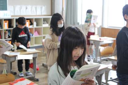 音読するときにどんな工夫をすればよいか考え、練習しました。