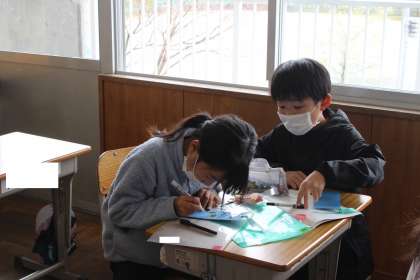 4年生の「しおり作り」の様子です。