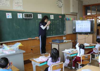 1年生 国語 公開日 2024/04/19 更新日 2024/04/19 お知らせ 1年生の国語「あいうえおのことばをあつめよう」の授業の様子です。 「あり」「あひる」「あさがお」など、「あ」のつく言葉を見つけ、手をたたきながら発音していました。