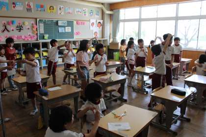 3年生 「入学を祝う会」の練習 公開日 2024/04/19 更新日 2024/04/19 お知らせ 3年生が1年生と一緒に「入学を祝う会」の練習をしました。 1年生とペアになり、入場する時のポーズを教室で教え、実際に体育館で入場の練習をしました。1年生と手を繋いで歩き、優しく教える姿が見られました。