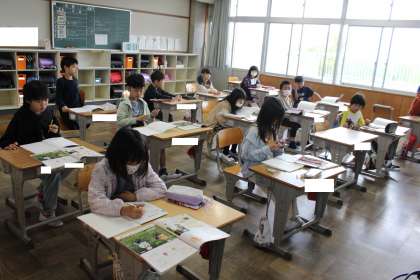 観察カードのまとめ方について考えました。生き物の特徴がよくわかるように、色や形、羽や足の数などをしっかりカードに書くとよいことを学びました。