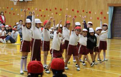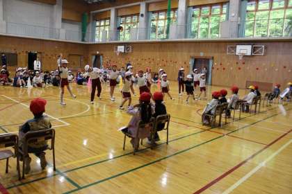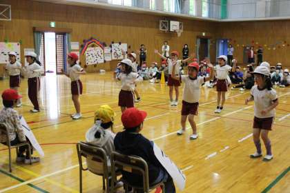 校歌とジャンボリミッキーを元気に歌い、踊りました。