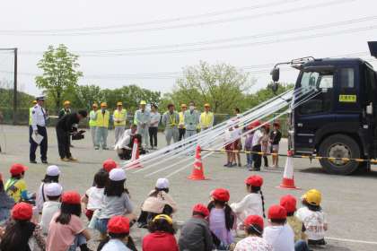ダンプカー教室 公開日 2024/04/26 更新日 2024/04/26 お知らせ 本日、豊田警察署とダンプカー協会のご協力でダンプカー教室が開かれました。 トラックからは見えない範囲があることを実際に代表児童がダンプカーに乗って確認したり、内輪差で風船が割れるところや、人形が轢かれそうになるところを見たりして、危険性について学びました。今日学んだことを生かして交通安全に気を付け、自分の命を自分でしっかり守ってほしいと思います。