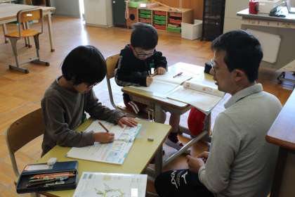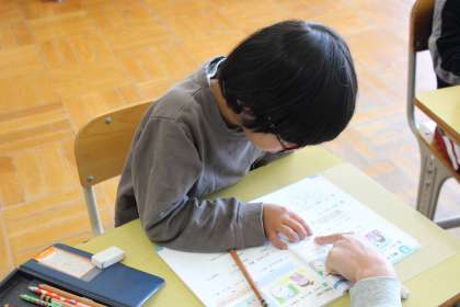 あすくすの授業の様子です。 算数の問題を1問1問熱心に解いていました。