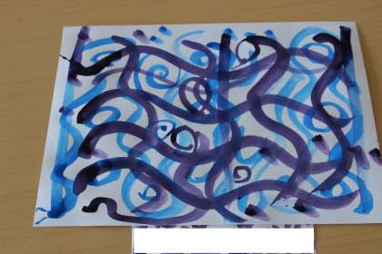 筆を自由に動かしながら、自分が「いい感じだなあ」と感じる絵を大変楽しそうに描いていました。