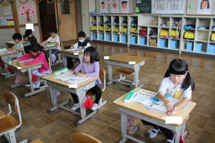 1年生の算数「7をいくつといくつにわけよう」の授業の様子です。
