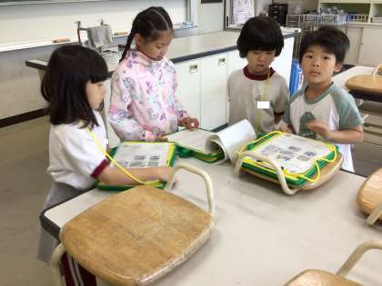 音楽室や家庭科室、校長室など、今まで調べてきたことを教えることができ、1年生も大喜びでした。