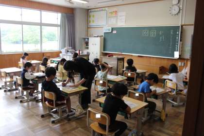 1年生 書き方 公開日 2024/05/16 更新日 2024/05/16 お知らせ 1年生の書き方の授業の様子です。 「はねにきをつけてかこう」というめあてのもと、跳ねるところに気を付けながら集中して書き、書き方の先生に〇をつけてもらっていました。