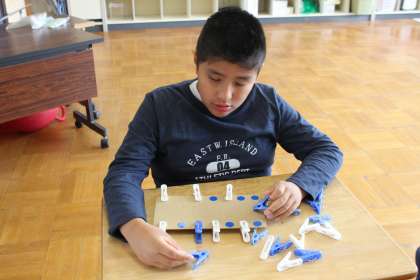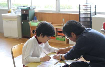 洗濯ばさみを決まった位置にはさむ練習をしたり、難しい文章を一文字一文字しっかり音読したり、間違えないように漢字を書く練習をしたりしていました。集中して取り組んでいました。