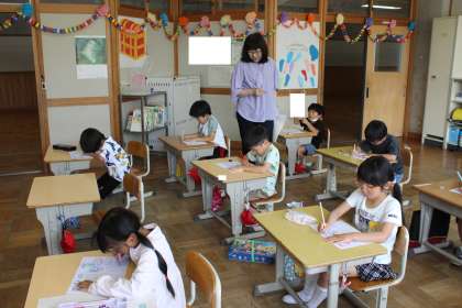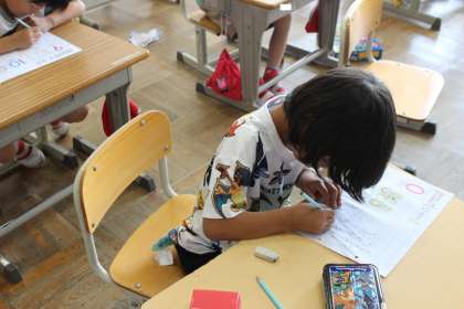 1年生 算数 公開日 2024/05/24 更新日 2024/05/24 お知らせ 1年生の算数の授業の様子です。 おはじきが入らなかった時の得点は何点か考える中で、「0」について学びました。0を正しく書く練習もしました。