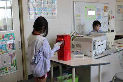これは図書委員会が企画した活動です。読書はがきを書いて図書室の郵便ポストに入れるとスタンプがもらえます。読書はがきが自分に届いたときにもスタンプがもらえます。スタンプの列がたて、よこ、ななめに揃ったらビンゴです。子どもたちは自分のおすすめのの本の読書はがきを熱心に書いていました。これをきっかけに読書の輪が広がるといいですね。