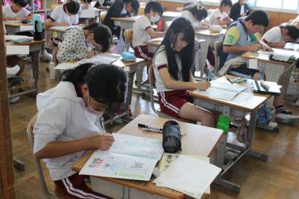 6年生 書写 公開日 2024/06/04 更新日 2024/06/04 お知らせ 6年生の書写の授業の様子です。 「湖」「街」など、3つの部分の組み合わせでできた漢字を、部分同士の大きさや位置に気を付けて書いていました。