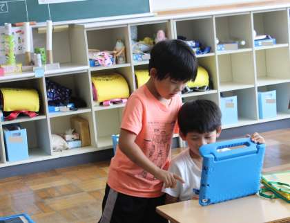 1年生 生活科 公開日 2024/06/10 更新日 2024/06/10 お知らせ 1年生の生活科の授業の様子です。 学校クイズを作っていました。紹介する部屋や物を決めて写真に撮り、タブレットの発表ノートでクイズを作っていました。タブレットの使い方を教えあう姿も見られました。