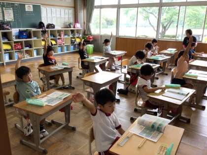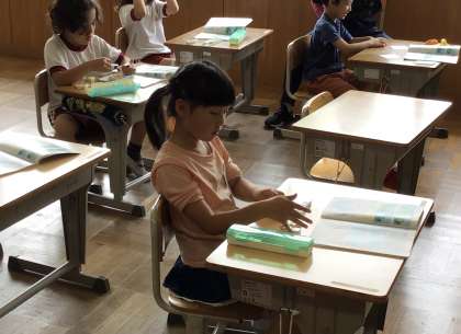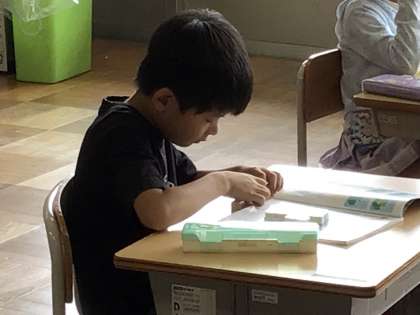 ふえるといくつになるか、数図ブロックを動かしてながら考えました。「ふえる」「いれる」の時も、たし算の式になることも学びました。