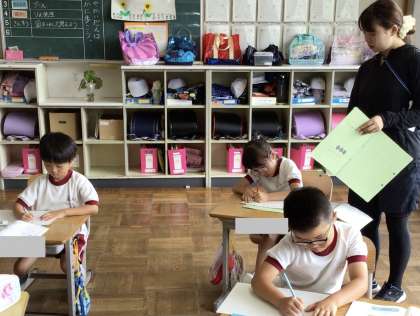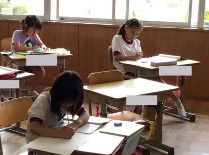 プリントの練習問題を解いていました。みんな集中して取り組んでいました。
