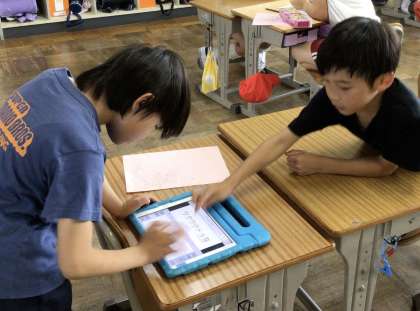 学級遊びの計画を立て、皆に説明するための発表ノートなどをつくっていました。