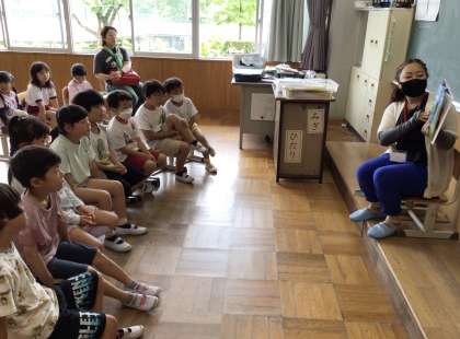 1,2,3年生のおはなしでてこい(読み聞かせ)の様子です。 楽しそうに聞いていました。