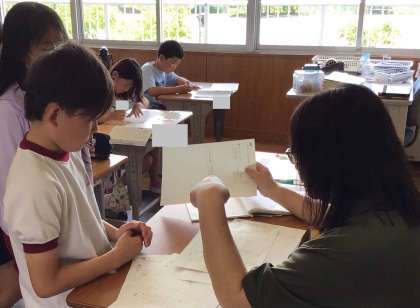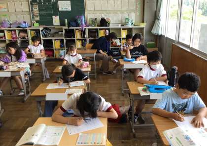 4年生の国語「山場のある物語を書こう」の授業の様子です。 時や場所、出来事を考えていました。