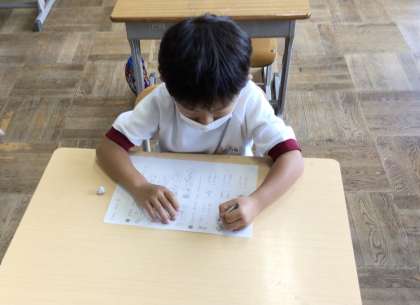 1年生の国語「のばすおん」の授業の様子です。 「ふうせん」「こおり」など、伸ばす音の書き方を学習していました。