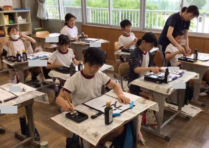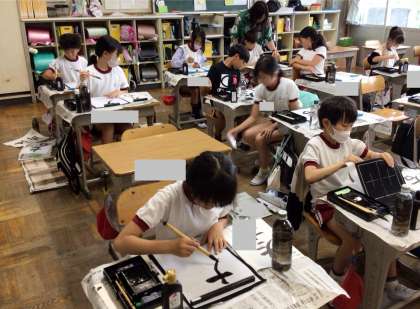 4年生の書写の授業の様子です。 「左右」と書いていました。一画一画丁寧に書いていました。