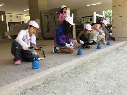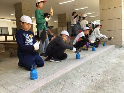 5年生 野外学習14 公開日 2024/07/04 更新日 2024/07/04 お知らせ 最後の活動「壁掛け」作りの様子です。杉材をガストーチで焼き、ススを取って磨いた後、ポスターカラーで絵や文字をかきます。