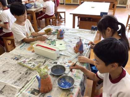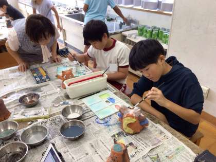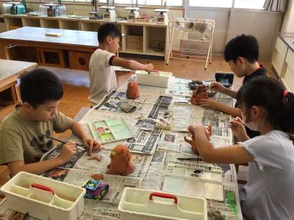 5年生 図工 公開日 2024/09/09 更新日 2024/09/09 お知らせ 5年生の図工の授業の様子です。 陶芸作品の絵付けをしました。夏休み前に作り、素焼きしたシーサーに色を塗ることで、より個性的なシーサーになりました。本焼きで完成になります。楽しみです。