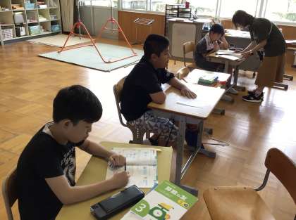 先生に個別に教えてもらいながら、集中して問題に取り組んでいました。