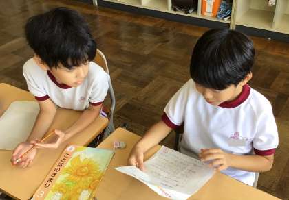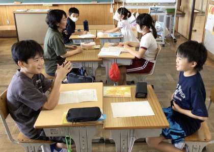 主語と述語について学習していました。休み中に書いてきた日記を読み、文の中から主語と述語を見つけたり、質問し合ったりする姿も見られました。