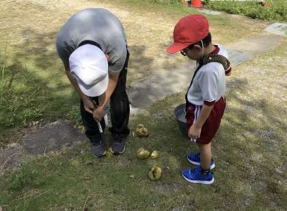 拾った栗をいがから出していました。大きな栗がたくさん取れました。この栗を使って栗きんとんを作るそうです。楽しみですね。