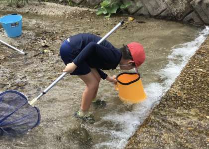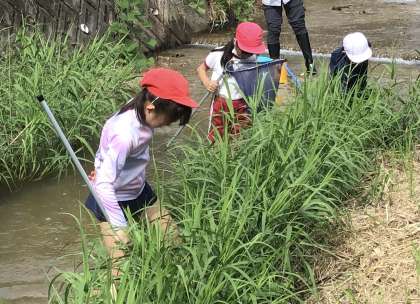 4年生は総合学習で白川の生き物調査に出かけました。
