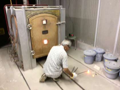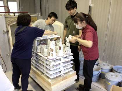 写真は、火曜日に、作品を窯入れするために、一つ一つ積んでいるところと、昨日、焼き具合を確かめているところです。地域に住む陶芸家の下鶴さんに手伝っていただき、無事に焼くことができました。下鶴さん、ありがとうございました。