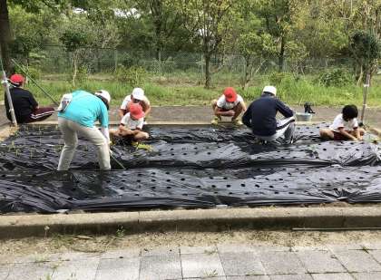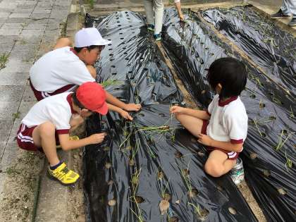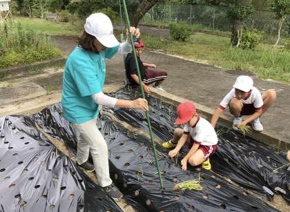 あすくす学級が玉ねぎの苗を植えていました。
