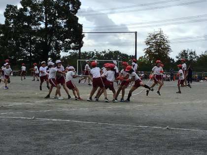 運動会 競遊 公開日 2024/10/19 更新日 2024/10/19 お知らせ 1,2,3年生の競遊「投げて投げて投げまくれ!玉入れ競争」と4,5,6年生の競遊「一味同心〜綱取り大合戦」の様子です。 玉入れでは、練習の成果を発揮して、たくさんの玉をカゴに入れることができました。 綱取りでは、思い切り綱を引っ張りあったり、隙を見て自分の陣地へ綱を運んだりする姿が見られました。