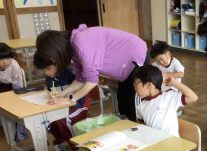 動物たちが教えてくれたものをサラダに入れると、食べたらどうなるか、教科書を読みながら調べ、プリントにまとめていました。このお話を読むと、同じサラダを作ってみたくなります。