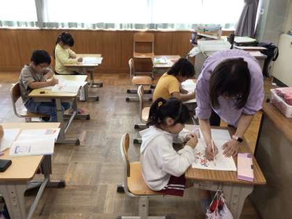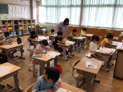 1年生 国語 公開日 2024/10/24 更新日 2024/10/24 お知らせ 1年生の国語「サラダでげんき」の授業の様子です。 アフリカぞうがサラダにしたことを読み取りました。あぶらとしおとすをかけてスプーンをはなでにぎって力づよくくりんくりんとまぜる場面を、腕を鼻に見立ててやり、そこから、アフリカぞうの気持ちを考えていました。腕を本当のぞうの鼻のように上手に動かす姿が見られました。