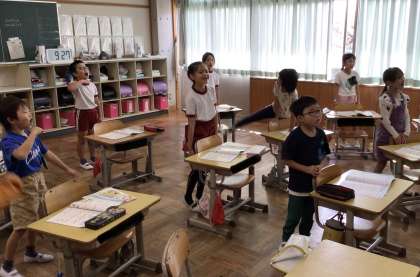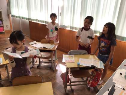 2年生 音楽 公開日 2024/10/25 更新日 2024/10/25 お知らせ 2年生の音楽の授業の様子です。 旋律の繰り返しに気をつけながら「かねがなる」という歌を歌っていました。「ゴンゴンゴーン」という鐘の音を繰り返して歌う組と、旋律を歌詞で歌う組に分かれ、重なりを楽しんでいました。本当の鐘のように声を響かせようとする姿も見られました。