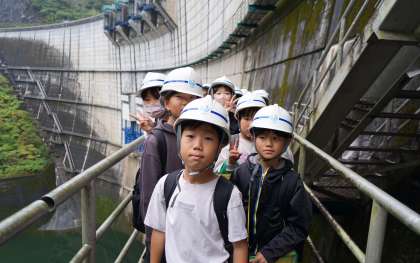 4年生 校外学習 公開日 2024/10/30 更新日 2024/10/30 お知らせ 4年生は昨日、社会科の学習で「矢作ダム」の見学に行きました。 矢作ダムは、防災のために造られたダムで、黒部ダムと同じようにアーチ型の形をしているそうです。その大きさと高さ、迫力に驚き、感動しながら、ダムの仕組みを学ぶことができました。