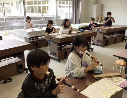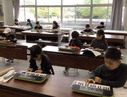 4年生 音楽 公開日 2024/10/31 更新日 2024/10/31 お知らせ 4年生の音楽の授業の様子です。 「茶色の小びん」をリコーダー等で演奏していました。♯も出てきて難しそうでしたが、少しずつ頑張って練習していました。
