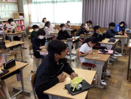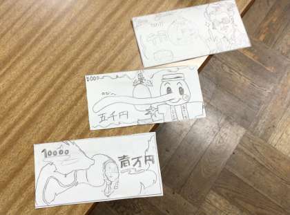 会社活動の報告会をしていました。報告のプレゼンがよくできていました。日頃の活動や、今日の報告をもとに、分配されたオリジナルの紙幣をどの会社にいくら渡したいか決めていました。それぞれの会社が倒産しないように頑張っているようです。やる気や活動の充実につながる面白い方法だと思いました。