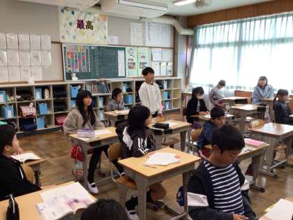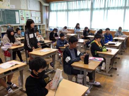 5年生 国語 公開日 2024/11/11 更新日 2024/11/11 お知らせ 5年生の国語の授業の様子です。 「大造じいさんとがん」のアフターストーリーを書くための学習計画を立てていました。先生が作成した「ごんぎつね」のアフターストーリーを2つ読み比べる中で、話の内容につなげていくために、今後何を読み取っていけば良いのか考える姿が見られました。