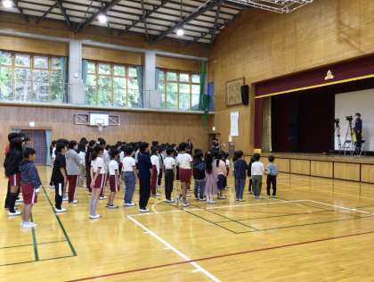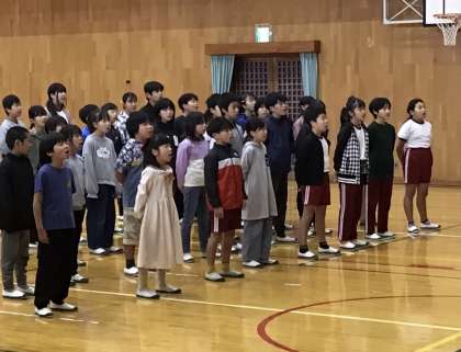 「ボクらの学び舎」撮影 公開日 2024/11/12 更新日 2024/11/12 お知らせ 今日は、ひまわりネットワークの「ボクらの学舎」の撮影をしています。 朝、体育館でタイトルコールと校歌の撮影をしました。元気いっぱいに声を出したり歌ったりすることができました。