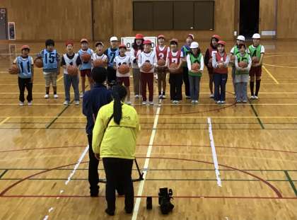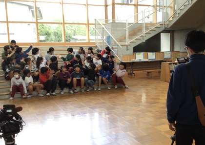 石畳小学校の好きな場所や自慢の紹介を撮影している様子です。