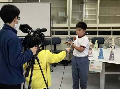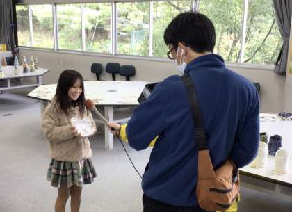 「ボクらの学び舎」撮影 3 公開日 2024/11/12 更新日 2024/11/12 お知らせ 学校の特色紹介の撮影で、陶芸の作品を紹介しているところです。 緊張しながらも、一生懸命インタビューに答える姿が見られました。