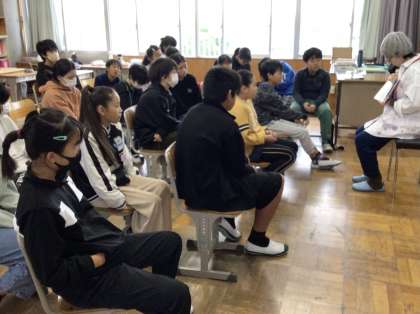 4、5、6年生 おはなしでてこい 公開日 2024/11/14 更新日 2024/11/14 お知らせ 4、5、6年生の「おはなしでてこい」の様子です。 話の内容に入り込み、真剣な表情で話を聞く姿が見られました。