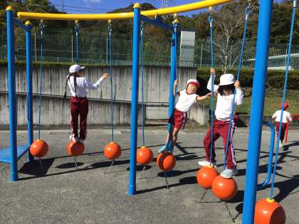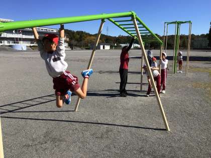 2年生 体育 公開日 2024/11/18 更新日 2024/11/18 お知らせ 2年生の体育の授業の様子です。 サーキットトレーニングをしていました。順番に遊具を周り、運動場を1周した後、また遊具に戻ります。今の遊具ができた頃より、雲梯など上手にできるようになっていて驚きました。体育で練習したり、放課に遊んだりしている成果ですね。