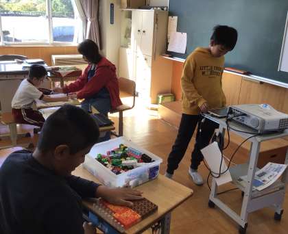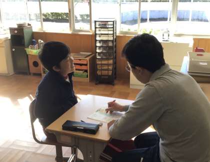 あすくす学級の算数の授業の様子です。 頑張って解いた問題の答えにマルをもらい、喜ぶ姿が見られました。