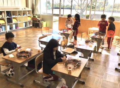 1年生 図工 公開日 2024/11/25 更新日 2024/11/25 お知らせ 1年生の図工の授業の様子です。 生活科で育てたアサガオとサツマイモのつるを使い、リース作りをしていました。たくさんの飾り付けをして、とても素敵なクリスマスリースができました。