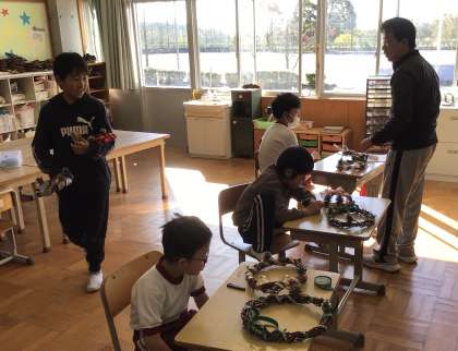 あすくす リース作り 公開日 2024/11/25 更新日 2024/11/25 お知らせ あすくす学級のリース作りの様子です。 リースに色をつけた松ぼっくりを貼るなどし、飾り付けをしていました。先生に手伝ってもらいながら真剣な表情で取り組んでいました。