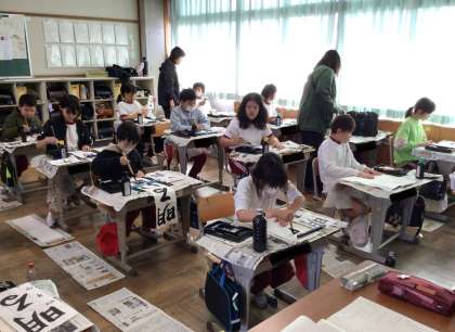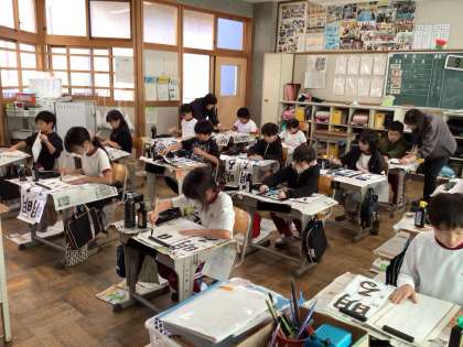 4年生 書写 公開日 2024/11/29 更新日 2024/11/29 お知らせ 4年生の書写の授業の様子です。 書き初めの「明るい声」という字を練習していました。お手本を見ながら一文字一文字丁寧に書く姿が見られました。